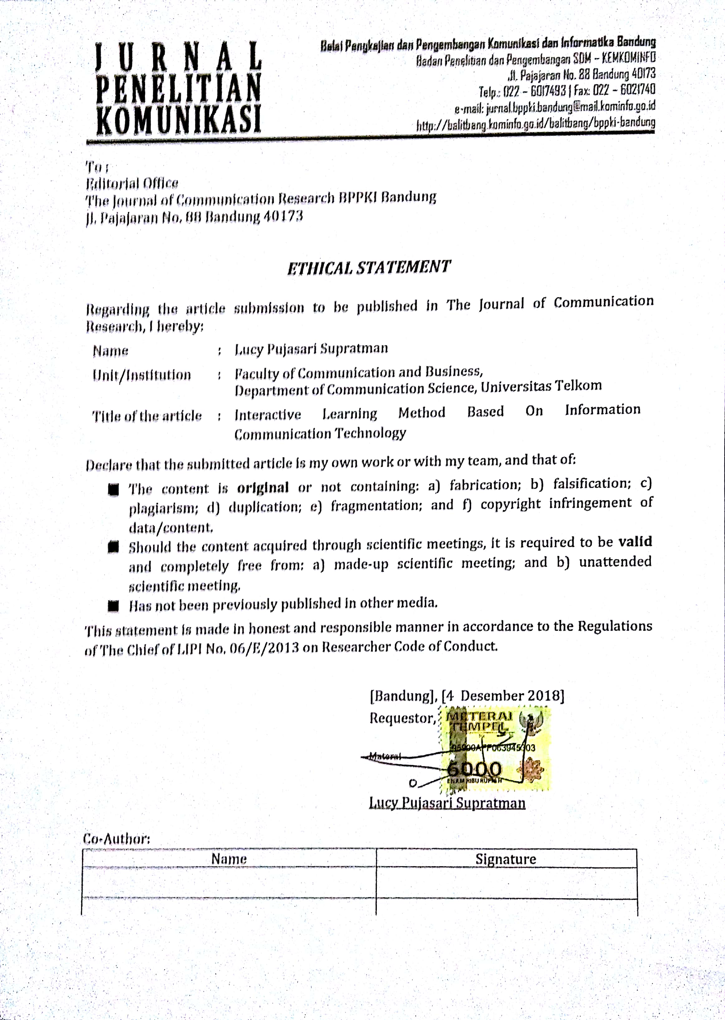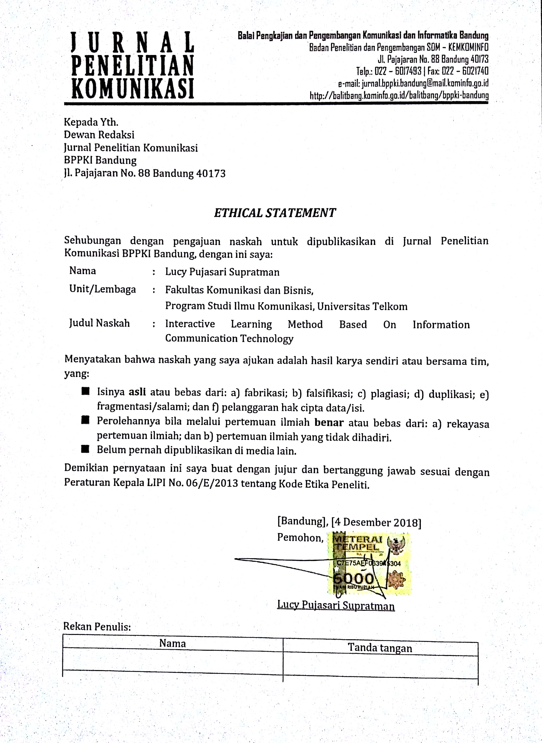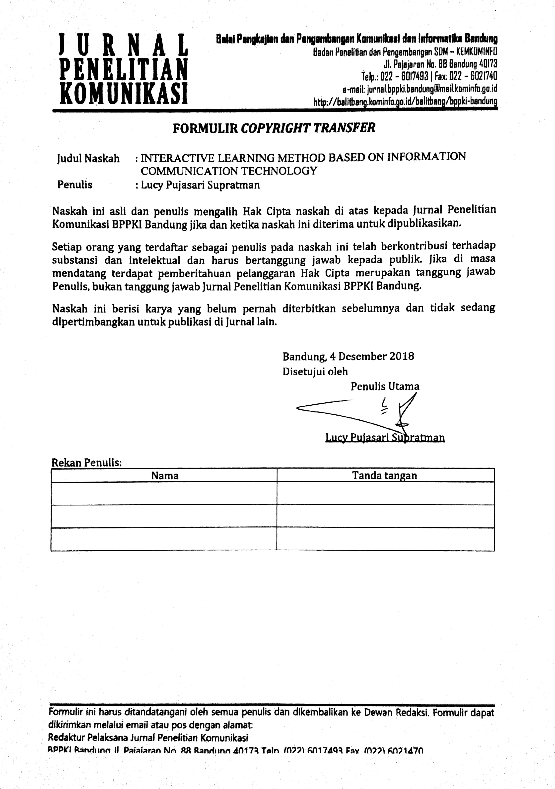 Iriantara, Y. (2014) Komunikasi Pembelajaran: Interaksi Komunikatif dan Edukatif Di Dalam Kelas. Bandung, Simbiosa Rekatama Media.