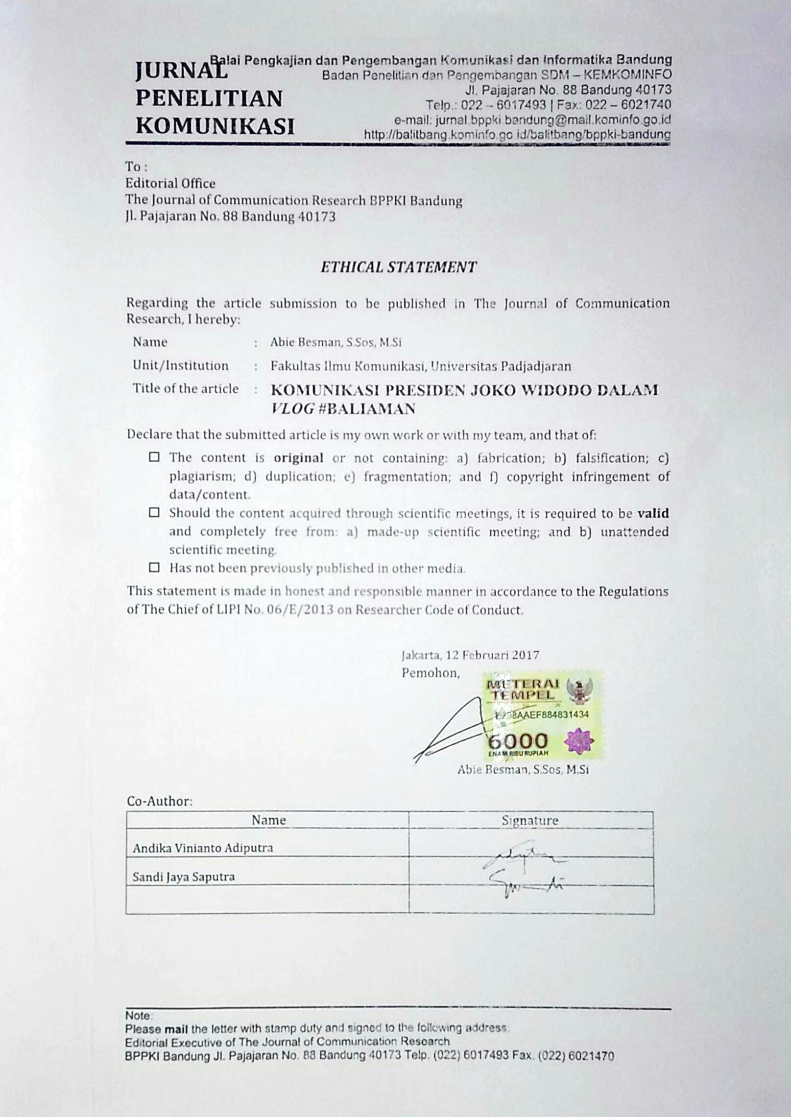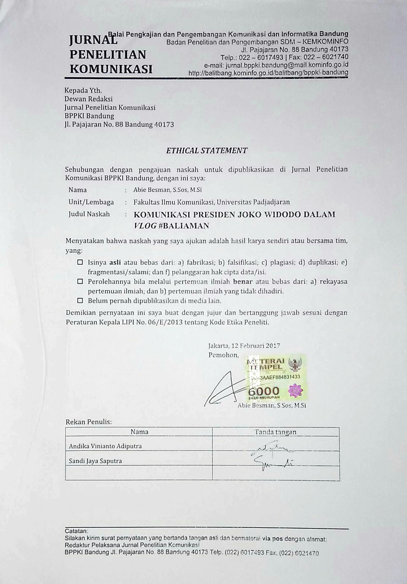 Saputra, S.J. & Besman, A. (2017) Citra Joko Widodo dalam Menghadang Isu Kebencian dan Investasi dengan Video Vlog. Sumedang, Unpad Press.