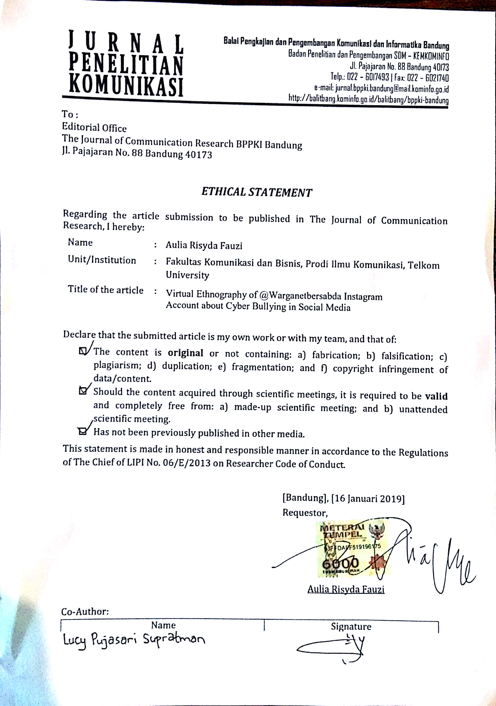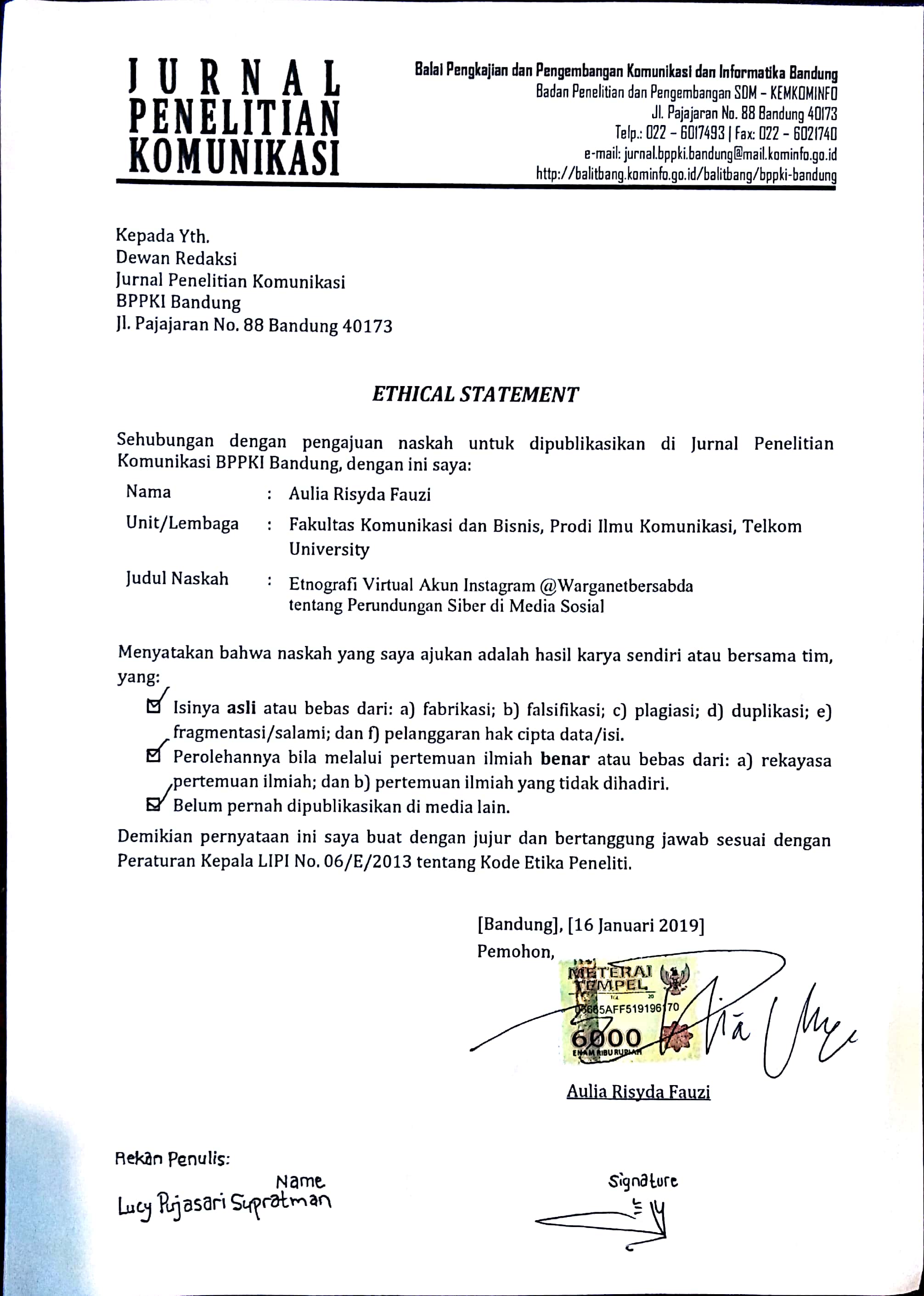 Rastati, R. (2016) ‘Bentuk Perundungan Siber Di Media Sosial Dan Pencegahannya Bagi Korban Dan Pelaku.’, Jurnal Sosioteknologi, 15(2). (dalam naskah Rastati)