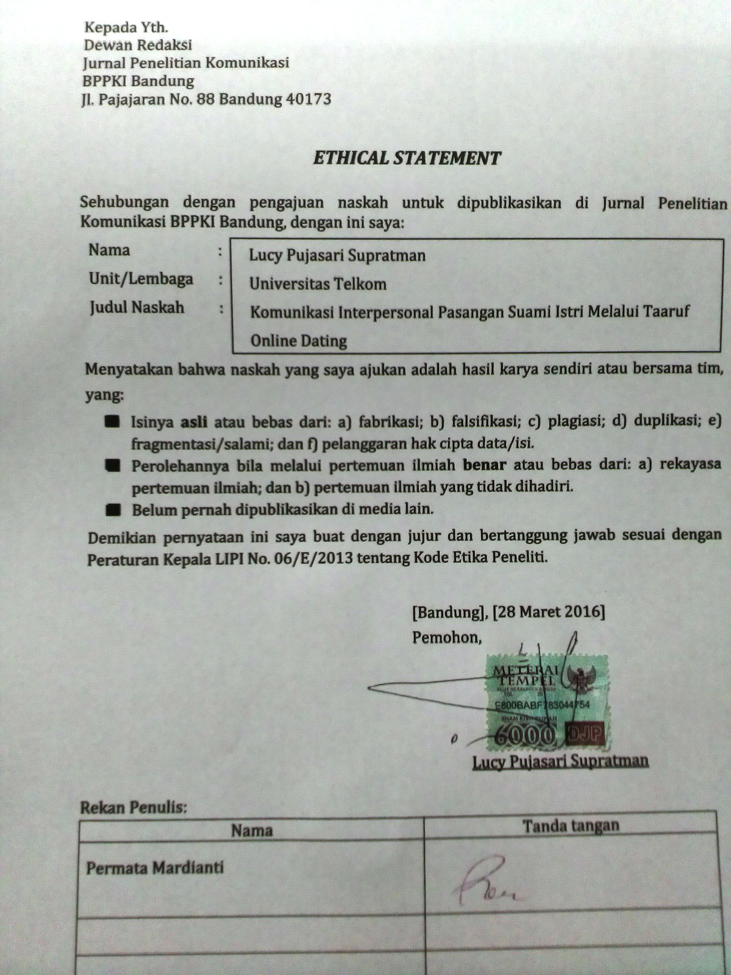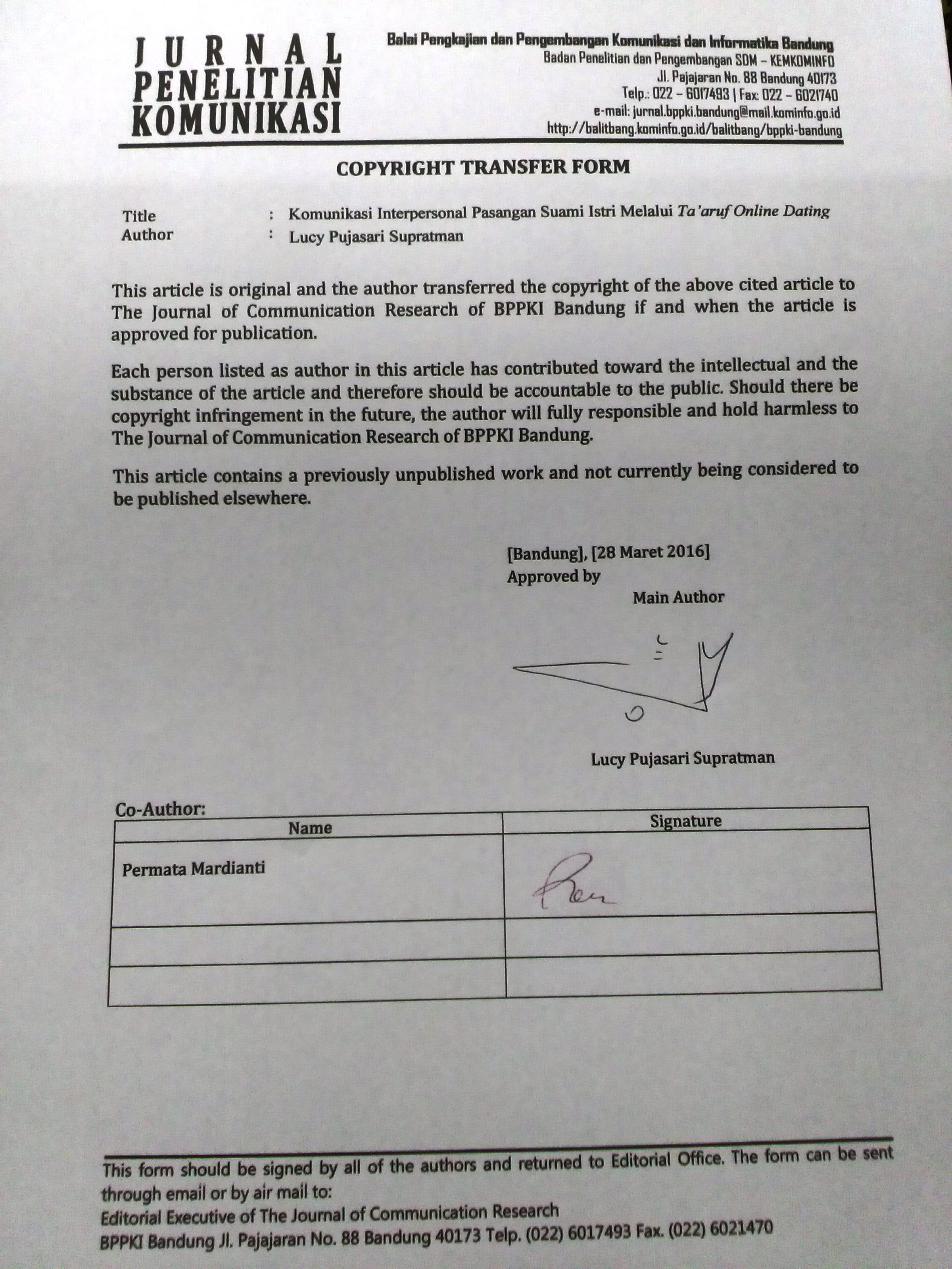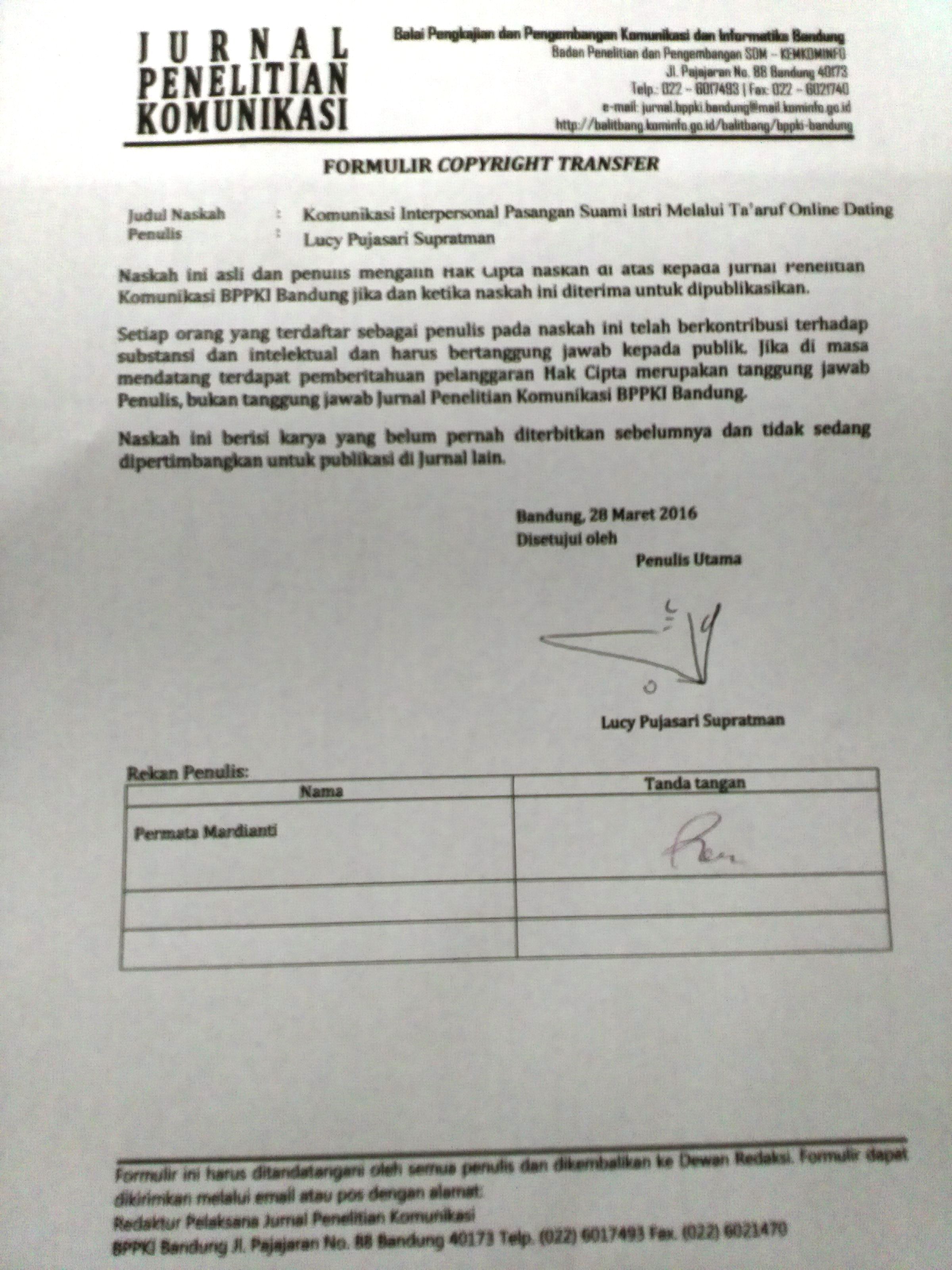 The development of social networking has revealed new opportunities for all varieties of internet sites that offer online dating services/online dating . One of them is the site of rumahtaaruf.com. During the process of matchmaking in rumahtaaruf.com., each candidate areis accompanied by a mediator who acts as an intermediary for both parties. Their role are job of mediator is to regulate and monitor the way of taaruf based on Islamic shari'a. This study focuses on the motive that underlying the attitudes of women and men who chosen spouses under the site services of rumahtaaruf.com. This study used a qualitative method with phenomenological approach. The data were obtained through interviews and observations. The informants were couples who have been married once brought together by Rrumahtaaruf.com administrator. The results showed that the motive prospective couples to choose rumahtaaruf.com was based on education, age, occupation , physical attraction, response of family and culture.